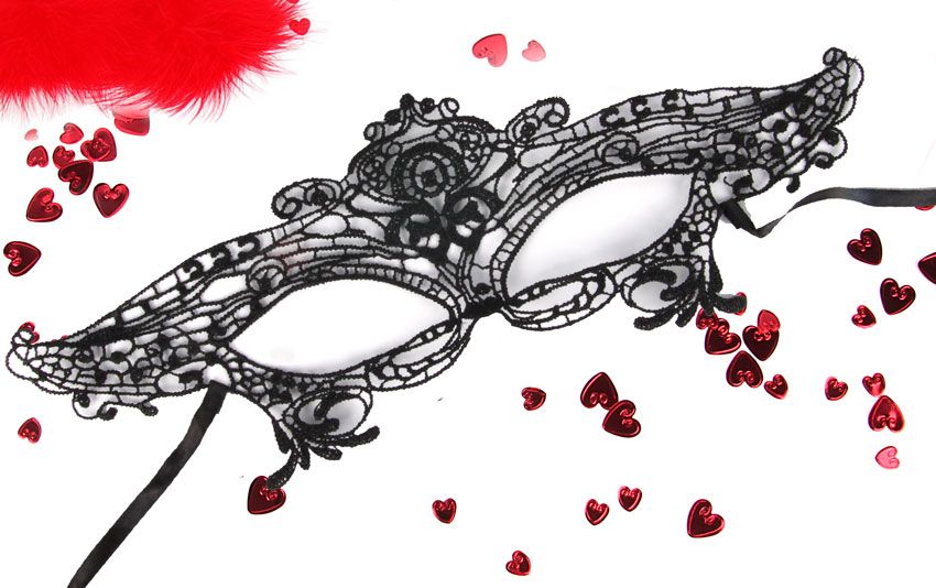 Создайте таинственный образ, где вы будете играть роль неприступной, но очень яркой обольстительницы. Ажурная маска на глаза не скроет ваш взгляд, но придаст образу особого шарма.