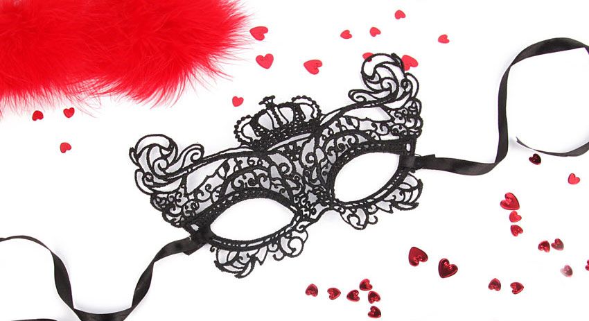 Создайте таинственный образ, где вы будете играть роль неприступной, но очень яркой обольстительницы. Ажурная маска на глаза не скроет ваш взгляд, но придаст образу особого шарма.