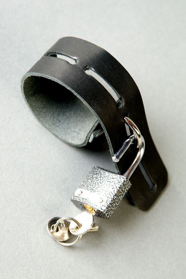Сбруя на фаллос из чёрной кожи. С замочком.