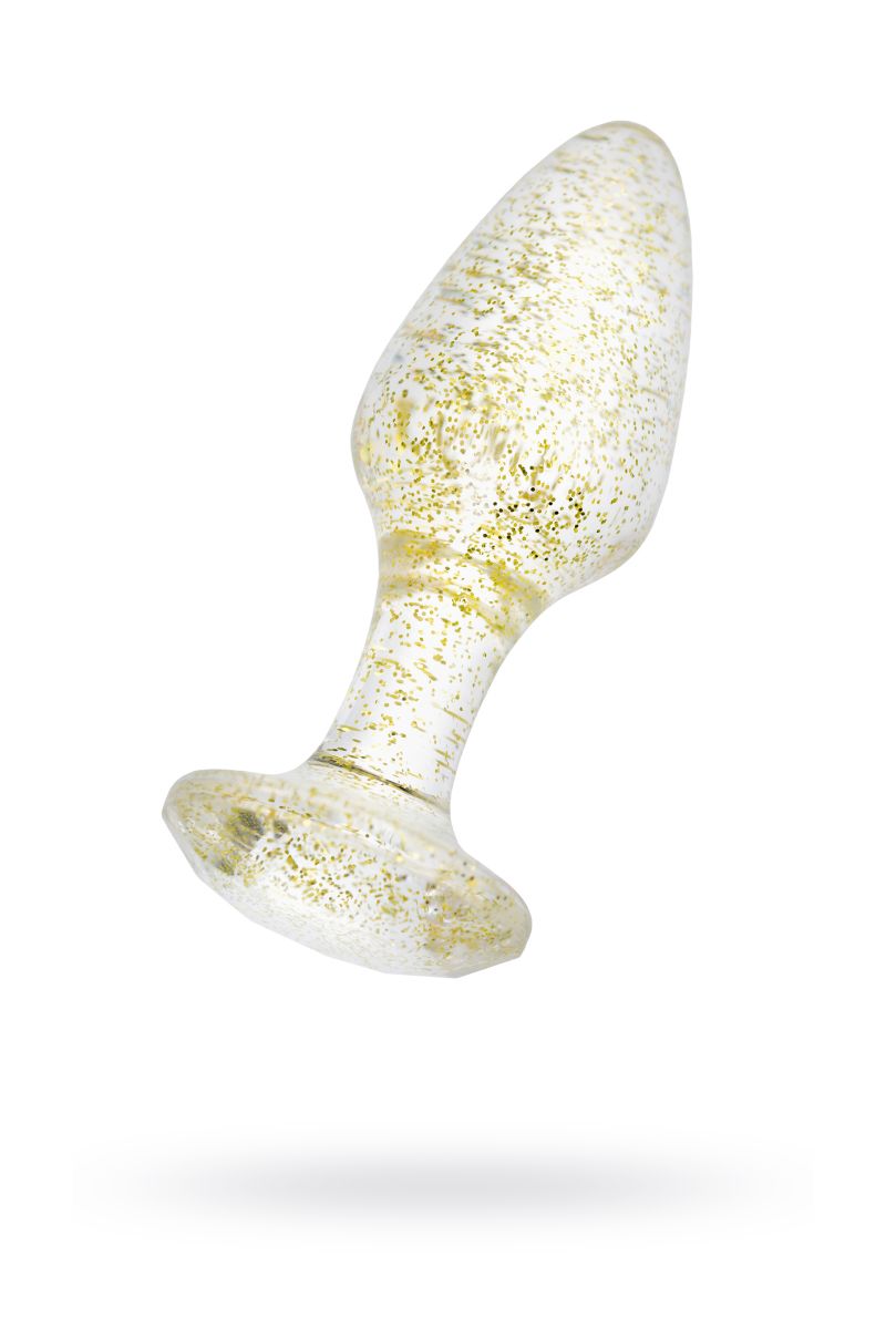 Анальная втулка классической формы выполнена из акрила. Прозрачный материал с золотистыми блестками внутри. Ограничительное основание обеспечивает безопасность при использовании, поэтому втулку высоко ценят не только опытные любители анального секса, но и новички. Рабочая длина - 6,5 см.