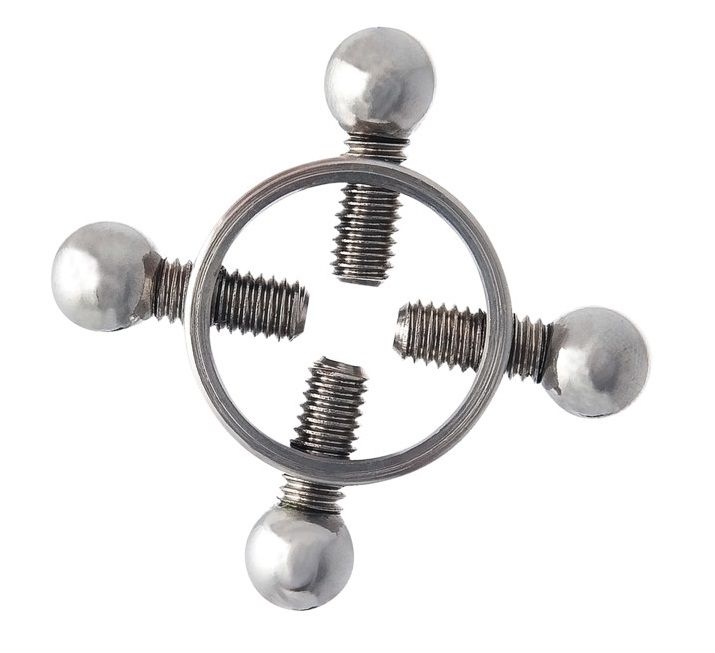 Серебристые зажимы для сосков на винтах (2 штуки в комплекте).