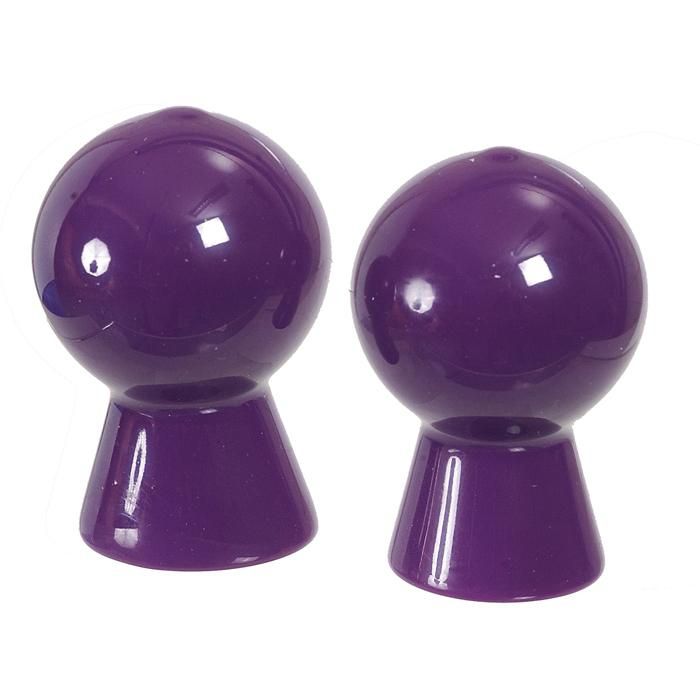 Вакуумный стимулятор для сосков фиолетового цвета. Стимулятор прижимается к соску и сжимается груша, чтобы откачать воздух. Отпуская грушу, создается вакуум, который всасывает сосок.
